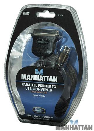 Konwerter USB na port równoległy. USB A męski na Centronics36 męski, 1,8 m