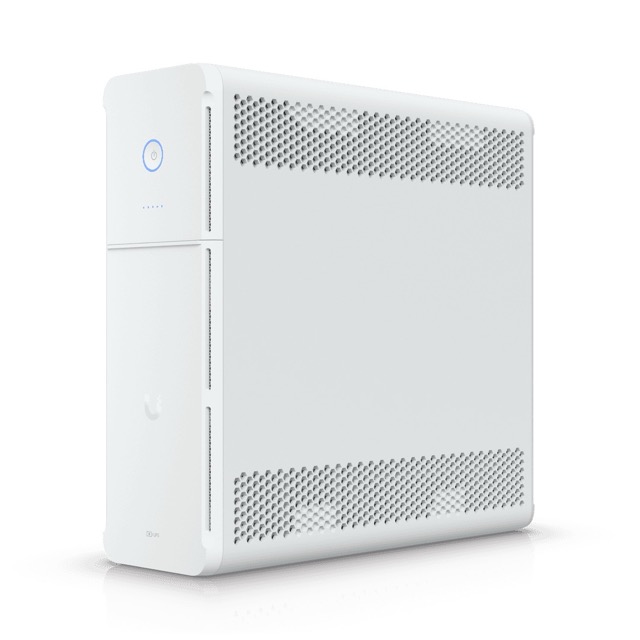 Zarządzany przez UniFi zasilacz UPS o mocy 1 kVA z 5 gniazdami zapasowymi, 5 gniazdami przeciwprzepięciowymi i wymienną baterią, 108 Wh, czas pracy przy połowie obciążenia (300 W) wynoszący 7 minut. Obsługuje funkcję Graceful Shutdown dla UNVR i UNAS oraz zapewnia zgodność z urządzeniami innych firm za pomocą złącza NUT.