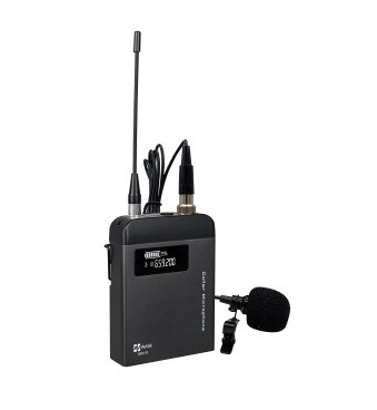 Nadajnik typu bodypack Avtek WM B posiada wyświetlacz LCD wskazujący m.in. poziom baterii i wykorzystywaną częstotliwość. Ponadto w zestawie znajduje się mikrofon krawatowy oraz nagłowny.