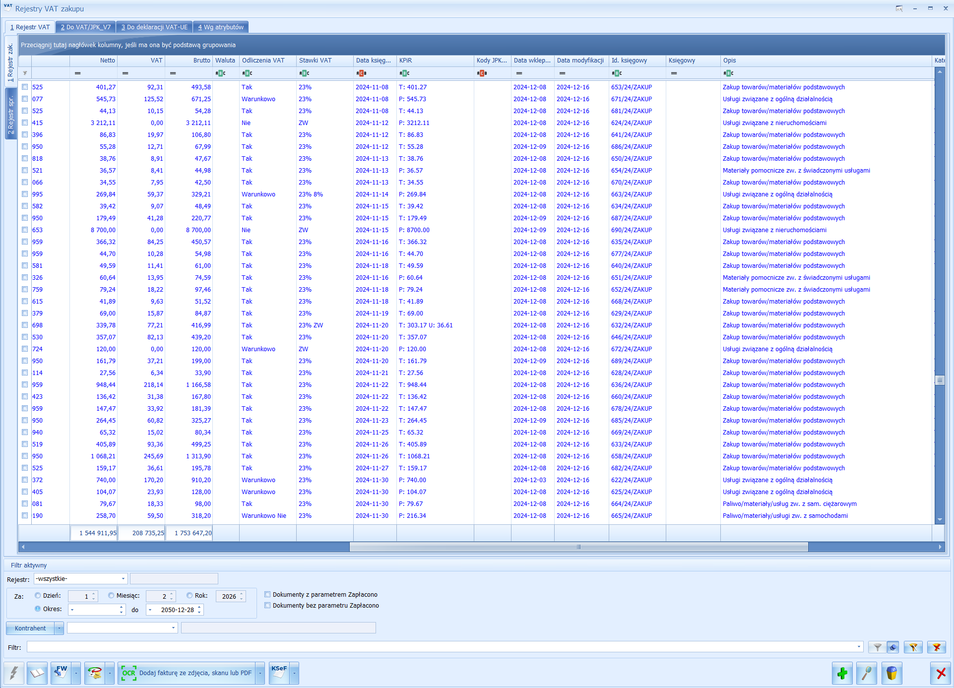 Dodatkowe kolumny na Rejestrze VAT w Comarch ERP Optima