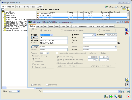 Możliwa jest obsługa dwutorowości amortyzacji oraz amortyzacji przyspieszonej.