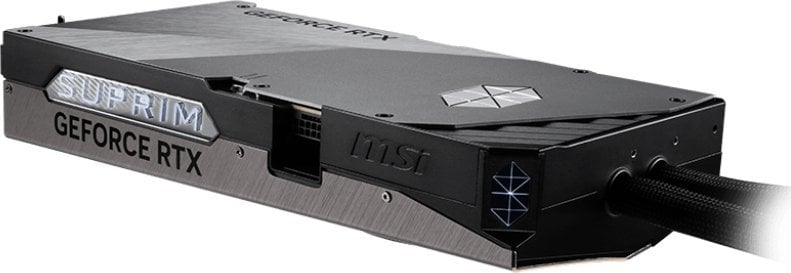 Doskonały i innowacyjny, hybrydowy system chłodzenia SUPRIM LIQUID wykorzystuje zarówno system chłodzenia powietrzem za pomocą wentylatora STORMFORCE, jak i system chłodzenie cieczą, aby skutecznie zarządzać odprowadzaniem ciepła z GPU i pamięci VRAM.