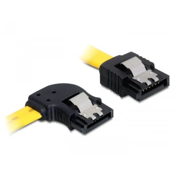 Ten przewód SATA firmy Delock umożliwia wykonanie wewnętrznego podłączenia różnych urządzeń SATA, np. dysków twardych, kontrolerów lub pamięci Flash. Jest on zgodny z najnowszym standardem i oferuje transfer danych z prędkością do 6 Gb/s. Zapewnia on kompatybilność wsteczną do poprzednich wersji SATA, jednak wtedy może on uzyskać prędkość transferu odpowiednią dla danej wersji. W przypadku podłączenia tego przewodu do dysku twardego zostanie on doprowadzony z lewej strony. Metalowe zaczepy występujące na złączach zapewniają solidne zatrzaśnięcie się przewodu w odpowiednim miejscu.