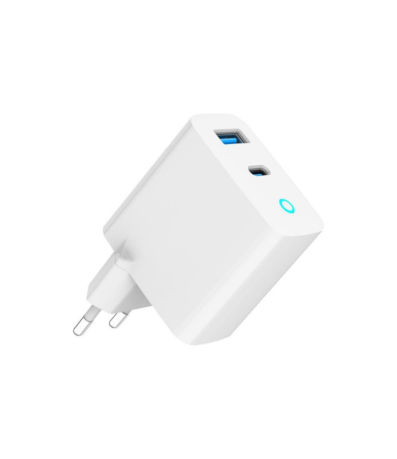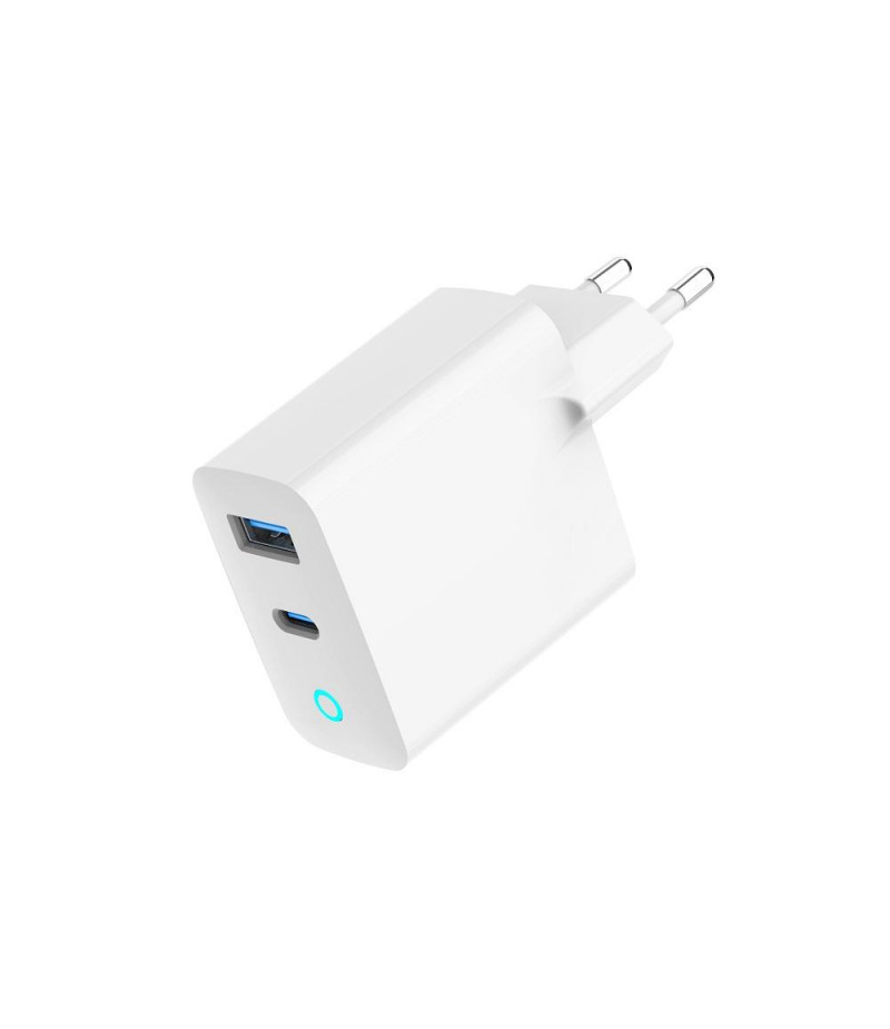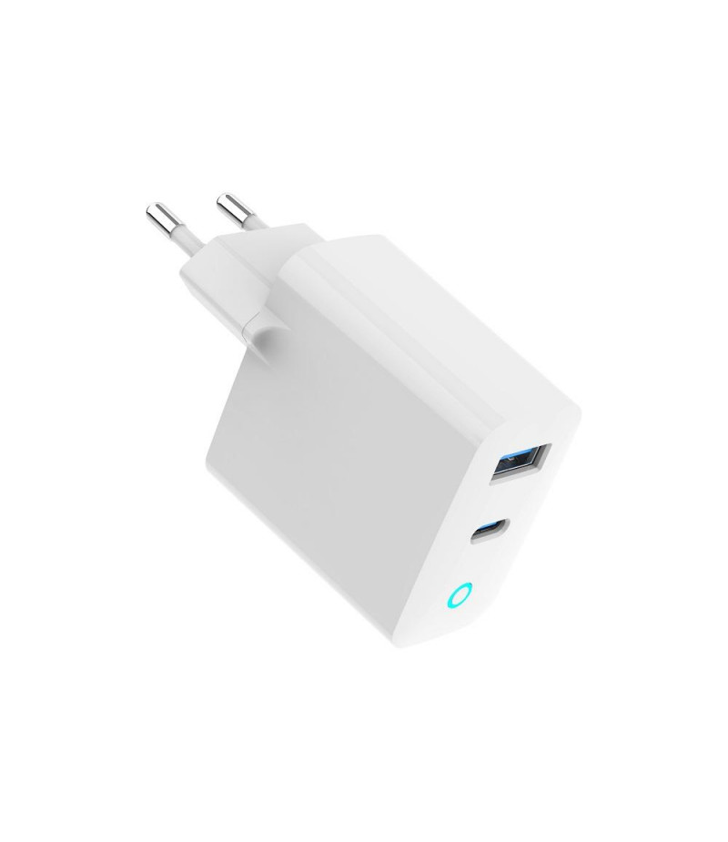 Szybka ładowarka USB GaN 2-portowa 30W, LED, biała