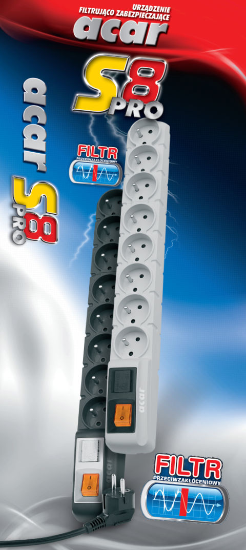 Listwa zasilająca Acar S8 PRO 8 gniazd 3.0 m Czarna