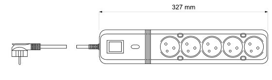 Dzięki wyposażeniu listwy w gniazdo zasilające IEC 320 C14 Użytkownik ma możliwość wymiany przewodu zasilającego na długość wymaganą przez siebie*. W standardzie producent oferuje odłączalny przewód o długości 2 m (wtyk z uziemieniem CEE 7/7 – IEC C320 C13).