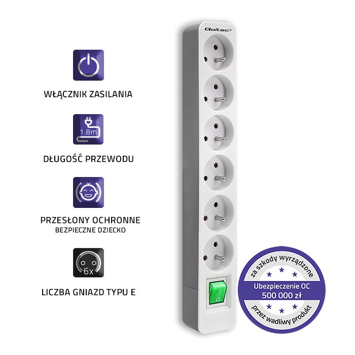 Chcąc zapewnić ochronę Tobie i innym użytkownikom urządzeń podłączonych do listwy wyposażyliśmy ją w następujące zabezpieczenia: