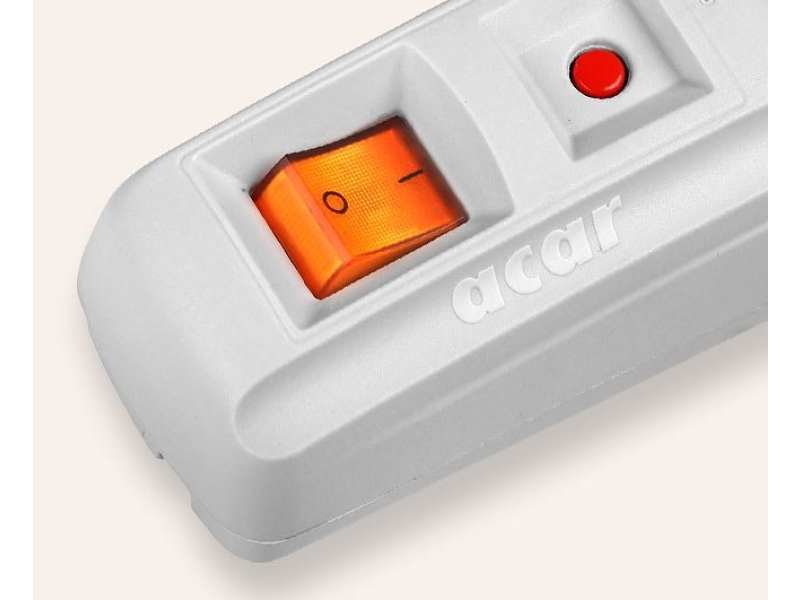 Acar F5 to zabezpieczenie przeciwprzepięciowe pięciu urządzeń. Podświetlany wyłącznik, wygodny automatyczny bezpiecznik, cztery możliwe kierunki ułożenia sznura sieciowego, estetyczne wzornictwo, konstrukcja z wysokiej jakości niepalnego tworzywa, szybkie warystory, a także 10 letnia gwarancja oraz niska cena gwarantują najbardziej trafny wybór do biura i domu.