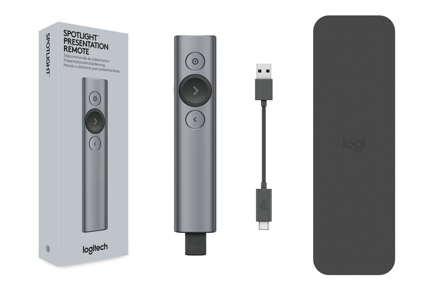 Pilot Spotlight błyskawicznie nawiązuje połączenie za pośrednictwem odbiornika USB lub technologii BluetoothŽ. Działa na zasadzie plug and play na większości platform i jest zgodny ze wszystkimi popularnymi aplikacjami do prezentacji. Ponadto można go ładować, a jego zasięg pracy wynosi do 100 stóp (ok. 30 metrów).