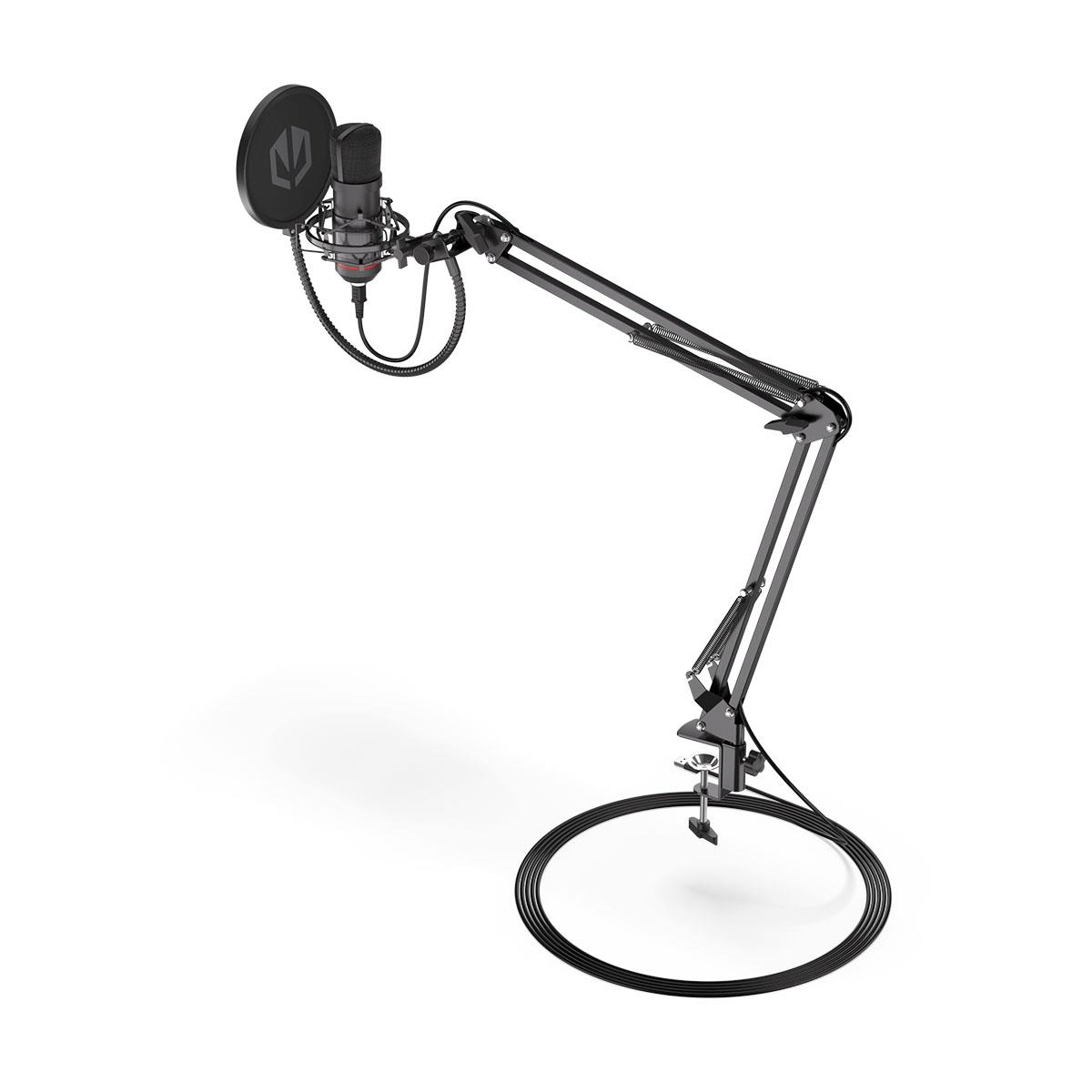 To zasługa kardioidalnej charakterystyki, która zbiera głos wyłącznie z przodu mikrofonu. O jego czystość dba pop filtr zewnętrzna siatka blokująca tak zwane spółgłoski wybuchowe. Dodaliśmy też koszyk antywibracyjny, który izoluje mikrofon od zewnętrznych wstrząsów nawet wtedy, kiedy przypadkiem uderzysz ręką w blat.