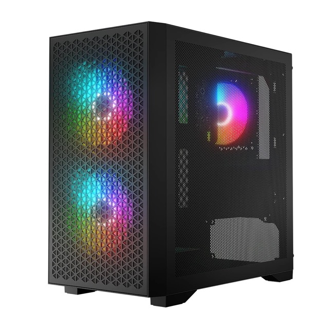 – 3 wentylatory ARGB 120 mm z kontrolerem w zestawie to optymalna ilość wentylatorów do schłodzenia komponentów. Dzięki podświetlanym wentylatorom, gamingowy charakter komputera podkreślisz ulubionym kolorem.