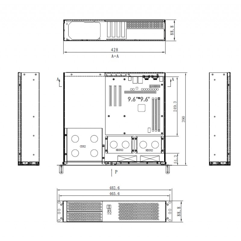 Obudowa Rack serwerowa o wysokości 2U i głębokości 390mm. Umożliwia zamontowanie płyt głównych o formatach micro ATX, mini ITX. Zapewnia miejsce dla 2 urządzeń 3,5″ wewnątrz oraz 2 miejsca 5,25 z dostępem z zewnątrz obudowy. Umożliwia zamontowanie do 4 kart rozszerzeń PSI low profile. Odpowiednio zaprojektowany system chłodzenia i wentylacji. Aby zapewnić odpowiednie warunki pracy urządzeń zainstalowanych w obudowie muszą być zachowane odległości umożliwiające odpowiednią wentylację (min 150mm) oraz odpowiednia temperatura otoczenia. W przemysłowych zastosowaniach należy zwrócić uwagę na zapylenie oraz zanieczyszczenia chemiczne. Obudowa serwerowa Rack jest przeznaczona do budowania serwerów i komputerów pracujących w biurach, magazynach, serwerowniach, zakładach przemysłowych i produkcyjnych.