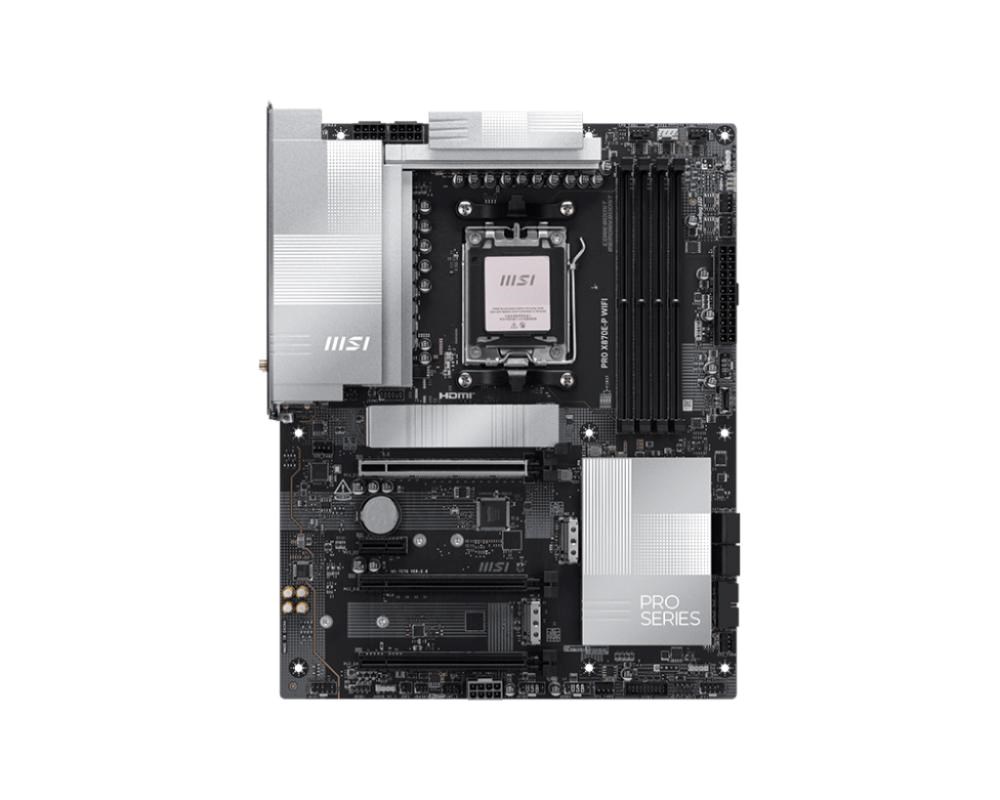 PRO X870E-P WIFI oferuje prosty design z harmonijną srebrną kolorystyką, która idealnie pasuje zarówno do białych, jak i czarnych komputerów. Został zaprojektowany z wieloma ekskluzywnymi funkcjami MSI, prawdziwym Wi-Fi 7 z EZ Antenna, 5G LAN, PCIe 5.0 M.2 z EZ M.2 Shield Frozr II i dodatkowym zasilaniem PCIe, gotowy na procesory AMD Ryzen serii 9000.