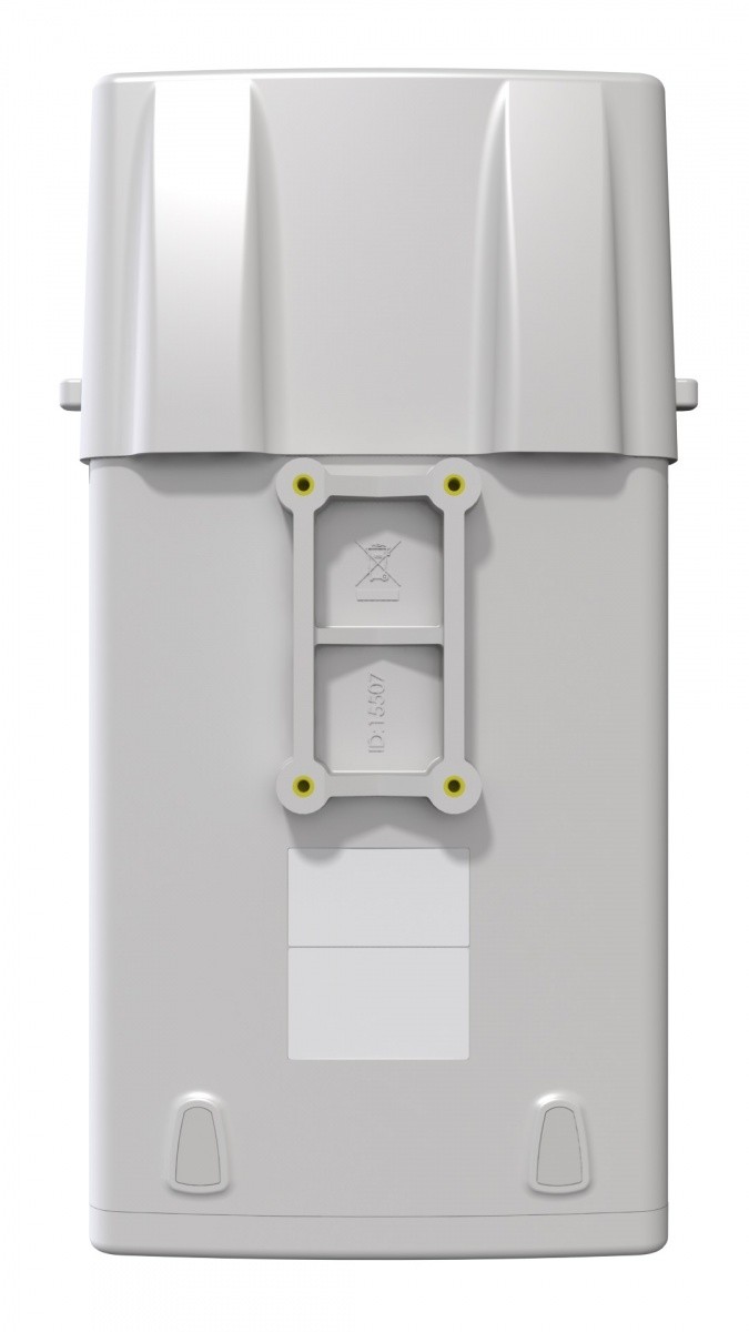 RB912 w obudowie zewnętrznej, wyposażony w dwa złącza RPSMA do anten i osłonę kablową chroniącą przed wilgocią. Dostępne są również trzy dodatkowe miejsca na złącza antenowe, na wypadek, gdybyś chciał wykorzystać gniazdo miniPCIe RB912 na jeszcze jeden interfejs bezprzewodowy do stworzenia urządzenia dwuzakresowego.