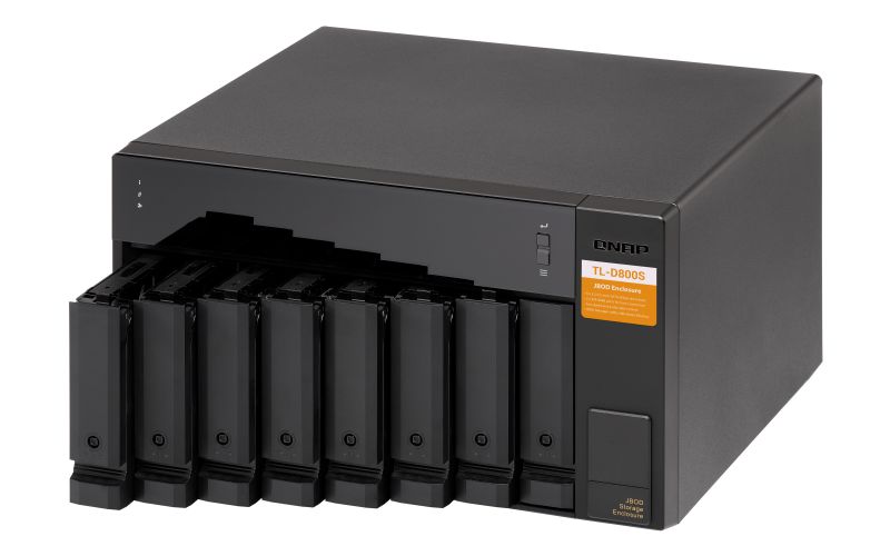 Obudowa dyskowa JBOD TL-D800S umożliwia tworzenie kopii zapasowych i rozbudowę systemu QNAP NAS, komputerów z systemem Windows i Ubuntu oraz serwerów. Model TL-D800S jest wyposażony w osiem 3,5-calowych zatok dyskowaych SATA 6 Gb/s, i oferuje kartę QXP PCIe do podłączania obudowy przy użyciu kabla SFF-8088 (lub SFF-8644). Zapewnia niezawodną wydajność odczytu/zapisu, umożliwiając płynne działanie pamięci masowej i tworzenie kopii zapasowych.