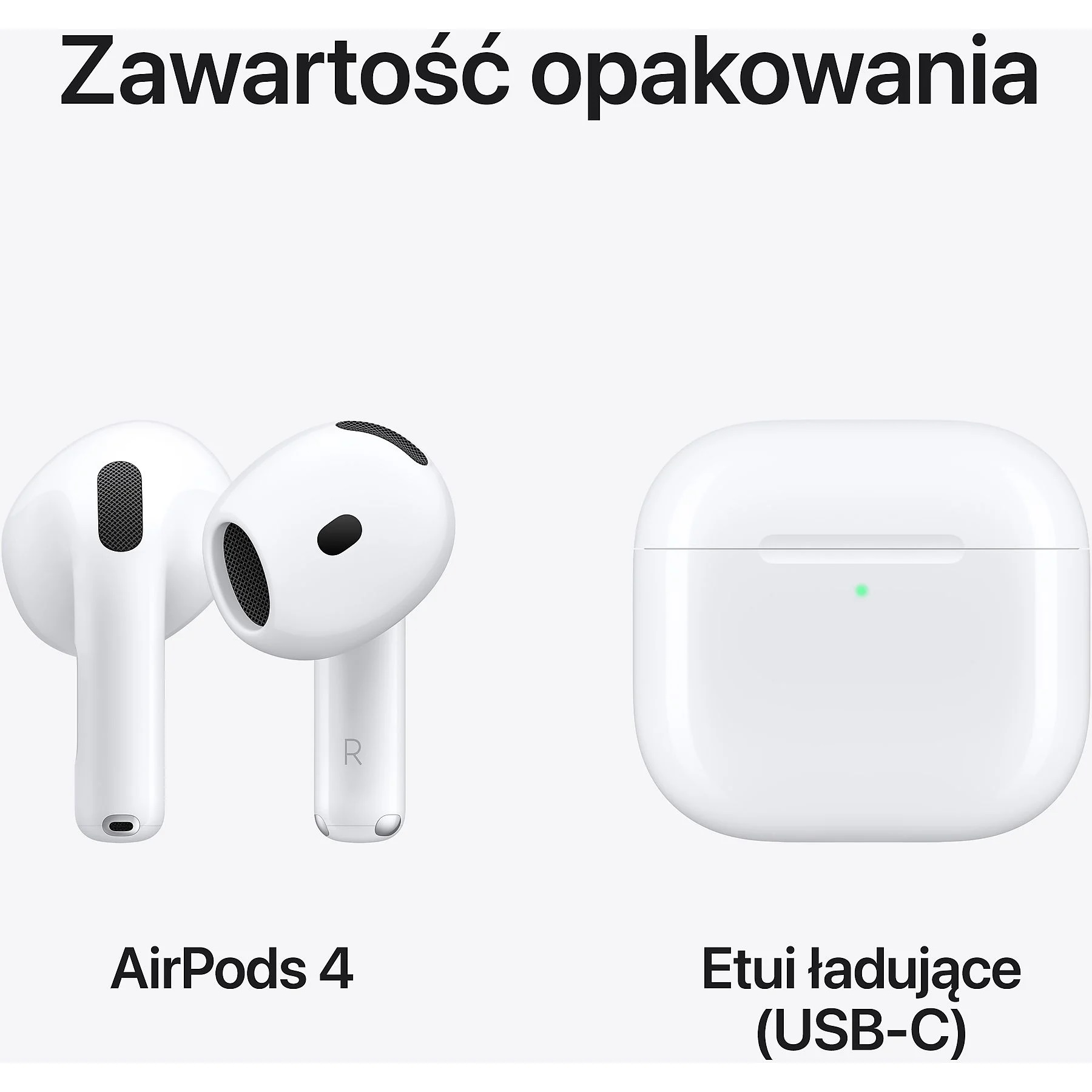 Przeprojektowane tak, żeby zapewniać fantastyczną wygodę i niesamowitą jakość dźwięku. Potężny czip H2 z Izolacją głosu podnosi jakość połączeń. Spersonalizowany dźwięk przestrzenny z dynamicznym śledzeniem ruchu głowy sprawia, że to, co słyszysz, dociera do Ciebie ze wszystkich stron. Konstrukcja ma klasę odporności na pył, pot i wodę IP54. A jednorazowe ładowanie przez USBC zapewnia nawet 30 godzin słuchania. Aplikacja Znajdź pozwala łatwo i wygodnie zlokalizować AirPods 4.