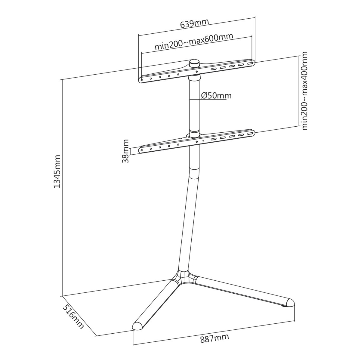 Podany rozmiar ekranu jest tylko propozycją. Na uchwyt standu można zamontować większy telewizor lub monitor gdy nie przekracza on maksymalnej wagi oraz mieści się w podanym standardzie VESA.