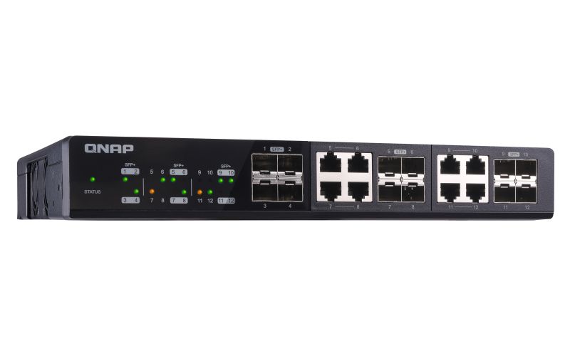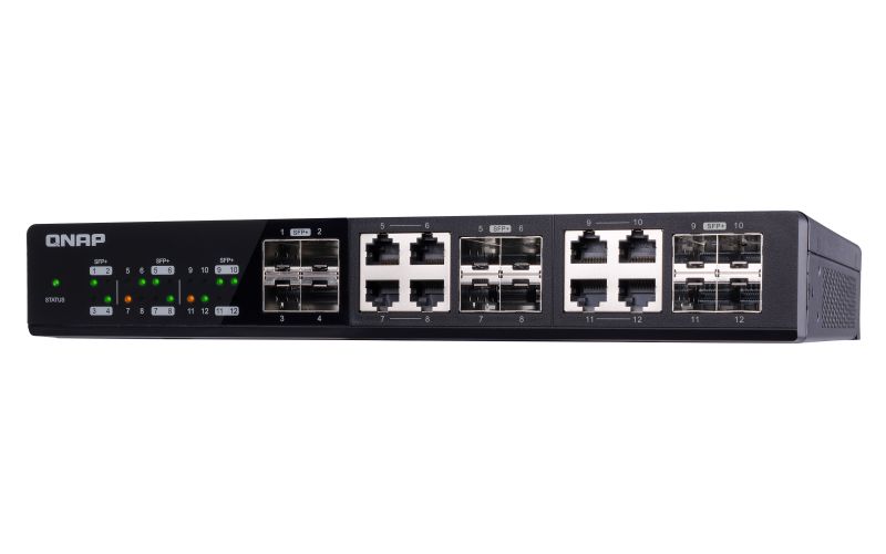 Model QNAP QSW-1208-8C to 12-portowy niezarządzalny przełącznik o przepustowości 10GbE, umożliwiający błyskawiczną aktualizację środowiska sieciowego w korzystnej cenie. Model QSW-1208-8C obsługuje standardy 10GBASE-T i NBASE-T, dzięki czemu można korzystać z wyższych prędkości sieci przy użyciu istniejących kabli Cat 5e i 6a. Dostępne są zarówno porty SFP+ (światłowodowe), jak i RJ45 (miedziane) (z 8 portami typu combo) do obsługi szerokiej gamy potrzeb sieci. Ten zgodny z IEEE 802.3az (Energy Efficient Ethernet, EEE) model QSW-1208-8C jest także energooszczędny. Dzięki wysokiej wydajności, niewielkim opóźnieniom i znakomitej funkcjonalności model QSW-1208-8C nadaje się idealnie do aktualizacji domowej lub firmowej sieci w celu obsługi połączeń 10GbE.
