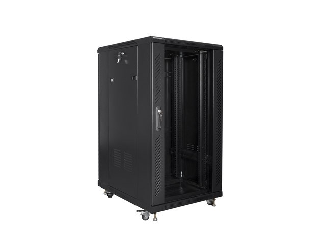 Szafa stojąca rack 19″ 22U 600x800mm czarna (drzwi przednie szklane) Lanberg