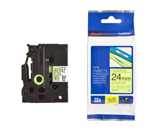 Taśma do drukarki etykiet Brother TZEC51 24mm Czarny na Fluorescencyjnym Żółtym