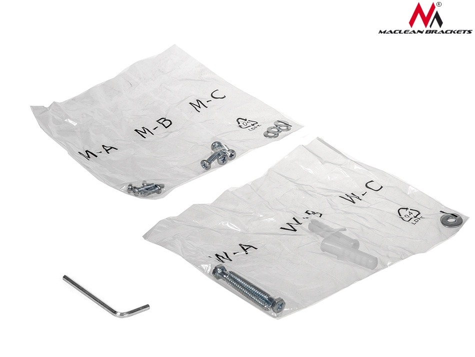 • W zestawie komplet śrub do montażu uchwytu do ściany oraz telewizora do uchwytu