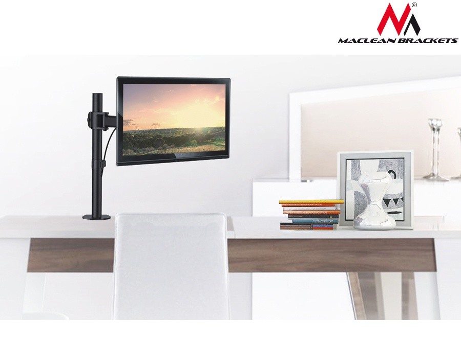 Ramię do monitora LCD Maclean MC-690 zapewnia duży komfort w pracy optymalizuje ergonomię oraz widok z monitora poprzez regulację kąta nachylenia, wysokości itp.