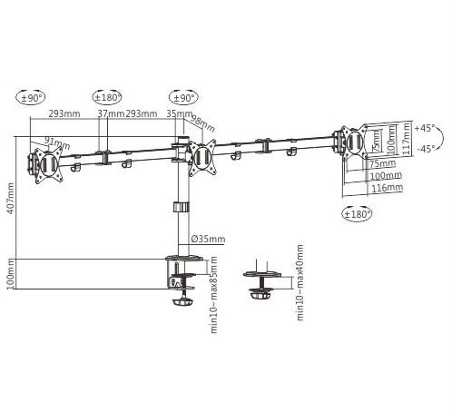 Ramiona umożliwiają obracanie, wydłużanie, chowanie lub pochylanie wyświetlacza oraz umożliwiają obracanie wyświetlaczy z trybu poziomego do pionowego itp.