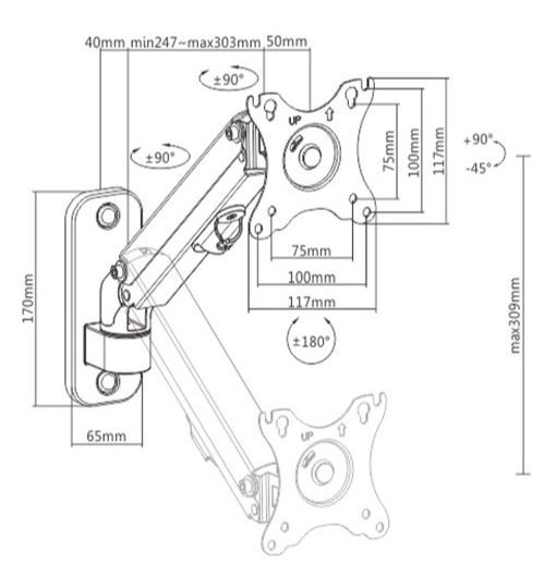 Regulowane ramię do monitora do montażu na ścianie, do 27 “/ 7 kg