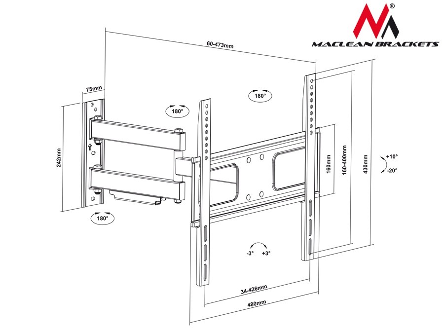 Uchwyt do mocowania LCD 33″ – 55″ – 50 Kg Ścienny uchylny Maclean