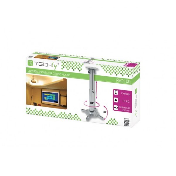 Wieszak do Projektora Techly ICA-PM 200WH, P/N: 022274 Uniwersalny Uchwyt Sufitowy do Projektora z Regulacją Kąta Nachylenia i Obrotu, 20cm do 15kg