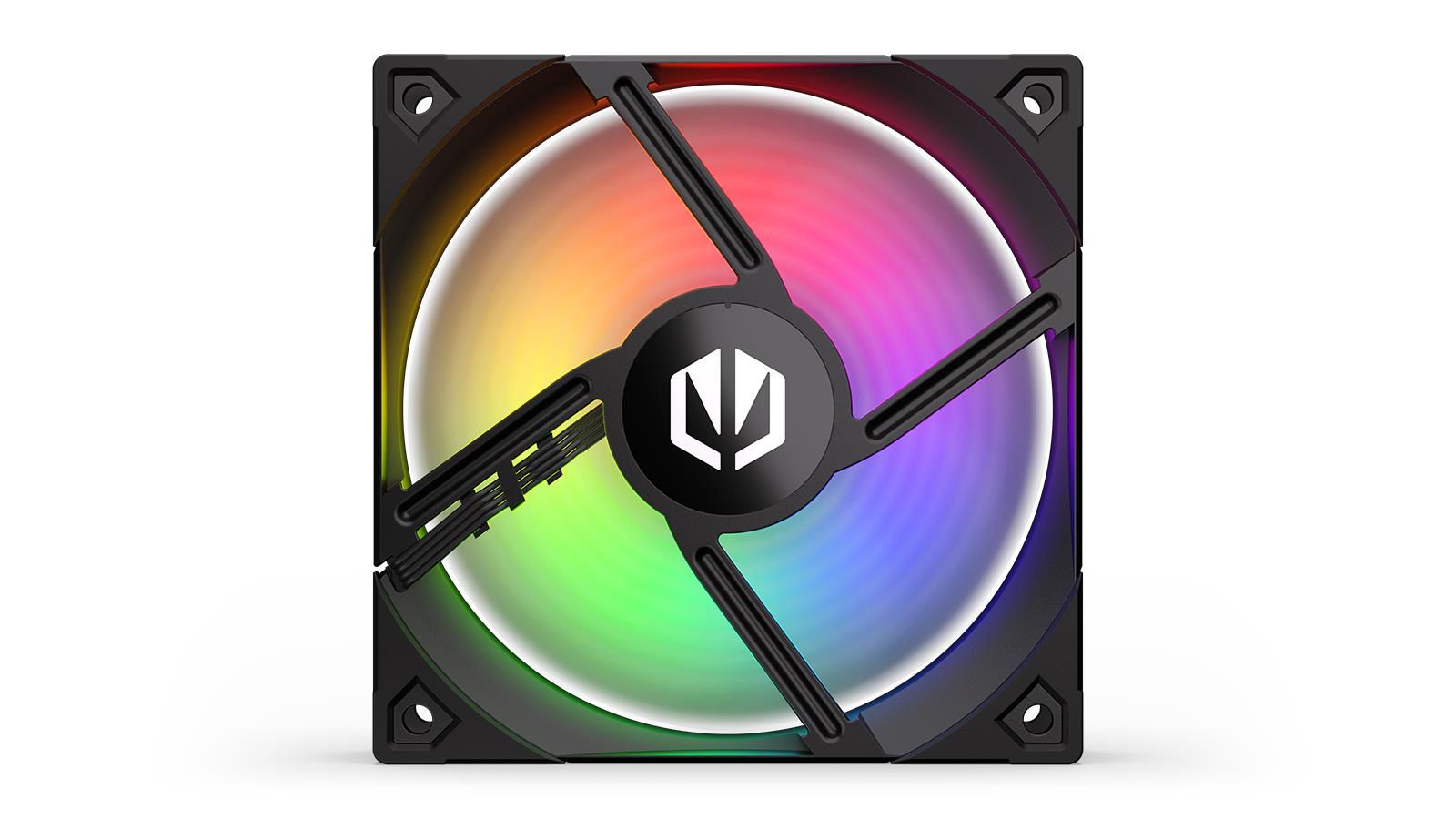 Wentylator z ARGB działa tak dobrze, jak jego brat w wersji bez podświetlenia. Mają taką samą konstrukcję, bo nie chcemy poświęcać wydajności dla fajnego wyglądu.