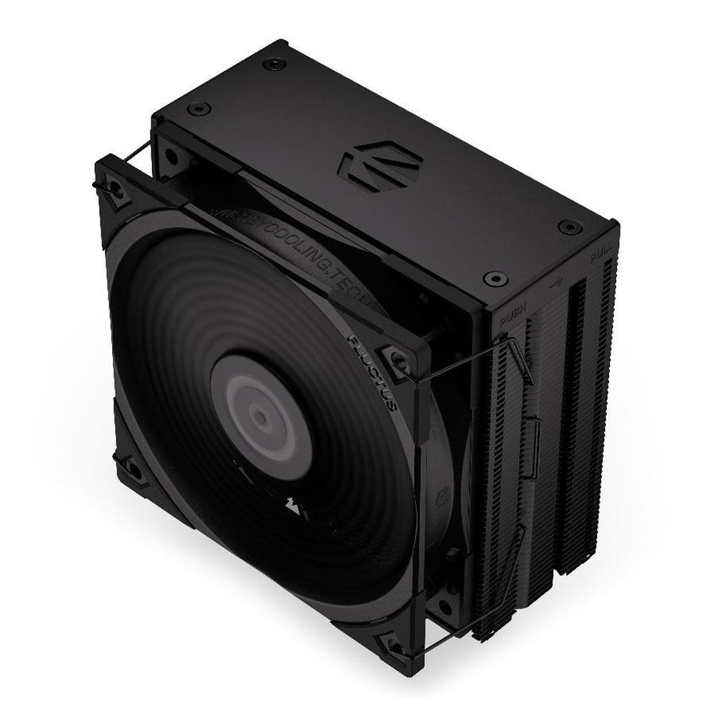 Za przepływ powietrza odpowiadają dwa wielokrotnie nagradzane wentylatory Fluctus 120 PWM z opcjonalnym trybem półpasywnym. Ich łopatki zostały wyprofilowane w taki sposób, aby jak najdokładniej owiewać gęsto ułożone żebra radiatora. Taki zestaw pracuje w systemie push-pull, który dodatkowo obniża temperaturę procesora. Mamy teorię, że gdyby odpowiednio go powiększyć, to na świecie rozpętałaby się kolejna epoka lodowcowa wzorowo radzi sobie z obniżaniem temperatury.