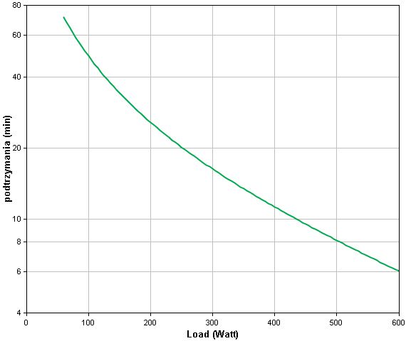 czas podtrzymania Czas podtrzymania przy 50% obciążeniu: 16 min, Czas podtrzymania przy 100% obciążeniu: 6 min