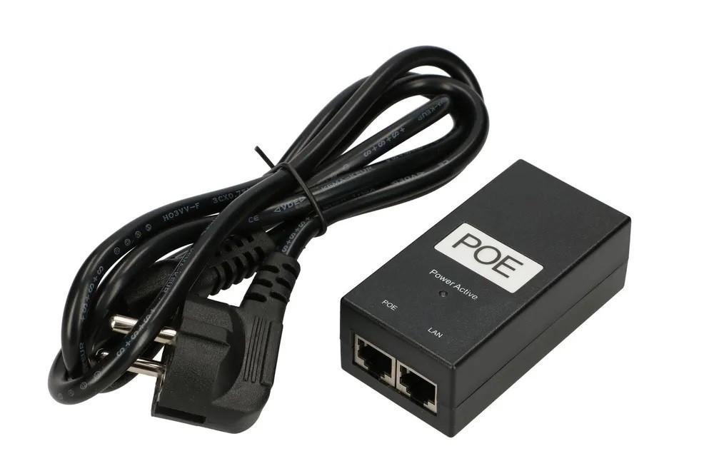 Zasilacz wyposażony jest w kabel zasilający o długości 1,2 metra zakończony złączem typu koniczyna oraz w dwa porty RJ45, do jednego podłącza się urządzenie, które ma być zasilane, a drugie gniazdo służy do podłączenia patchcordem switcha lub routera. Urządzenie można zainstalować w pomieszczeniach mieszkalnych, teletechniczne lub szafach typu rack.